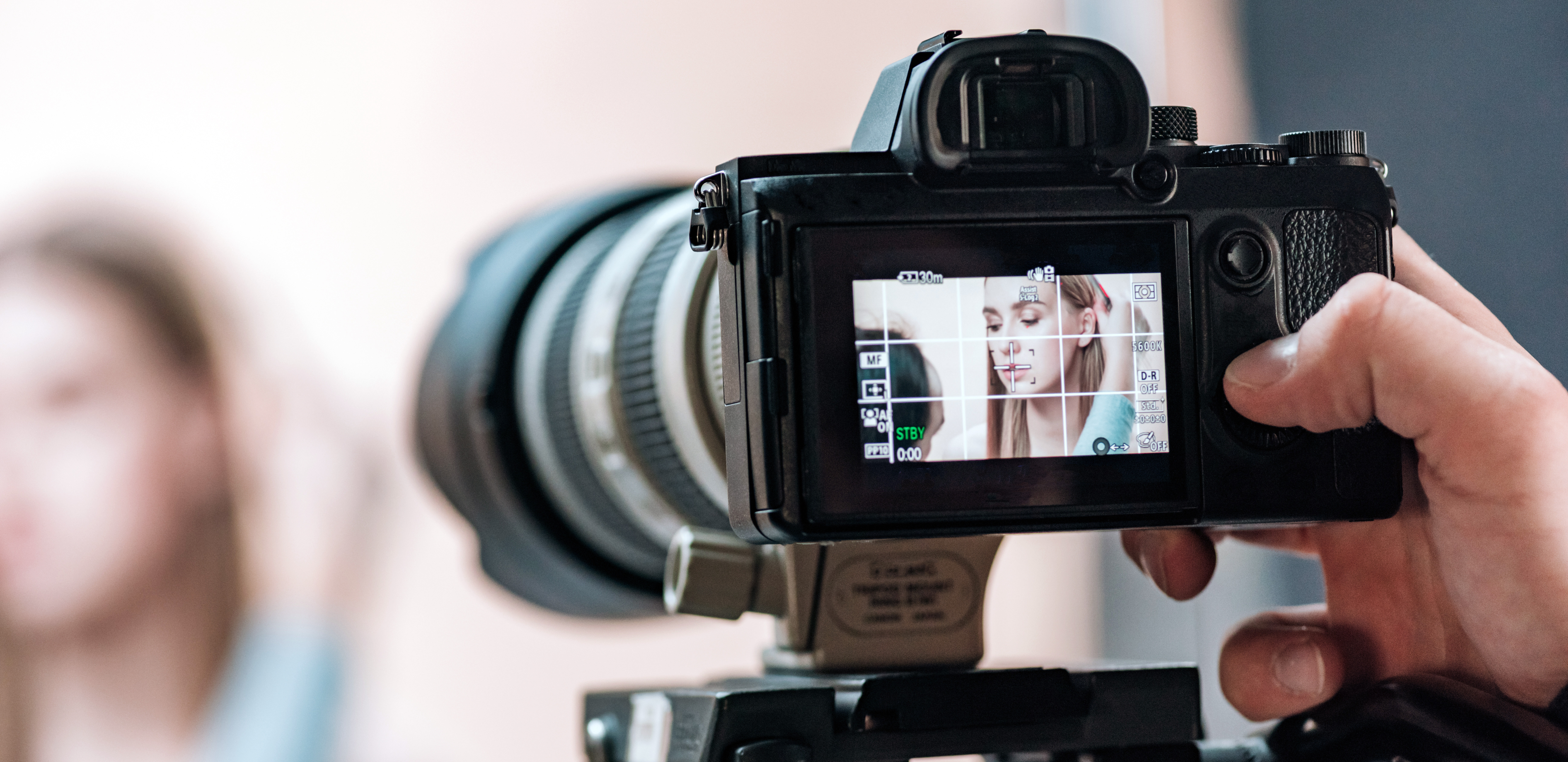 You are here: Home / Photography Services / Selective focus of beautiful model on camera display in photo st